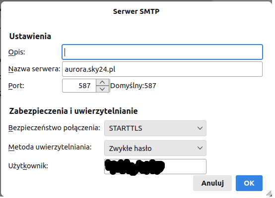 Konfiguracja poczty wychodzącej:
