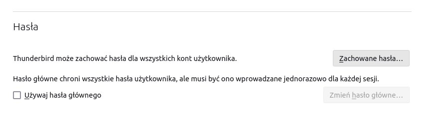 Thunderbird posiada mechanizm menagera haseł i Wasze stare hasło pamięta. Można je odczytać wchodząc w Ustawienia lub inna nazwa na starszej wersji Opcje i w menu po lewej prywatność i bezpieczeństwo